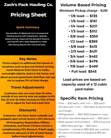 Running a legitimate junk removal business means covering real costs — fuel, dump fees, insurance, maintenance, flat tires, and responsible disposal.
